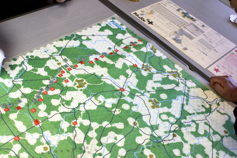 「ツーラの戦闘結果をサイコロ振って行くだけでいいのでは?」と私が言えば、「いや、続けるなら全体的に動かさないとダメだよ」と軍神殿。その言に従い、ソ連軍の前線へ攻撃を続行する。と言っても、北部は休戦状態だったが。
