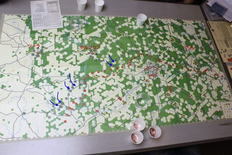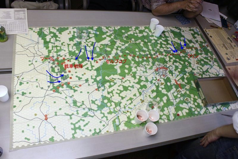 この戦略眼には新鮮な驚きを禁じえなかった。確かに、ツーラは危険になったものの、セルプコプの周囲にはドイツ軍がいないのである。対戦中にこのような適切な解説をされるのは殆どない。表情を変えることは無かったが、心強い味方を得られたと湧き上がる幸運感は格別だった。