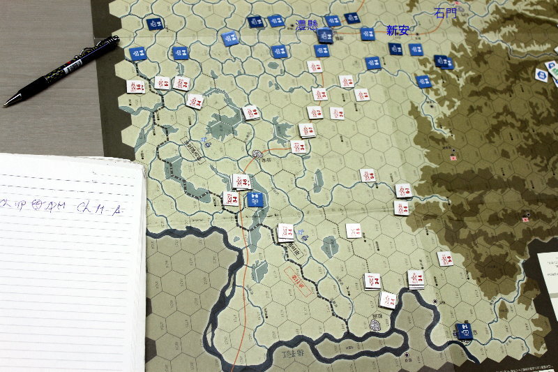 中国軍は澧懸と臨澧中間から石門へかけて2重の戦線を構築。余裕があるため澧懸へHQを派遣。これは戦力の増強だけでなく、ZOCを持たせる事で抵抗力が段違いに高、めるため。