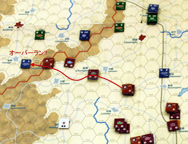 *DASRECHさんへ私信2:北朝鮮軍の合身は金日成ラインの北ではできなかったね。ディスプレイを前のターンのものと見比べると、間違えているのが確認できます。