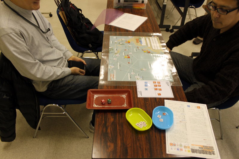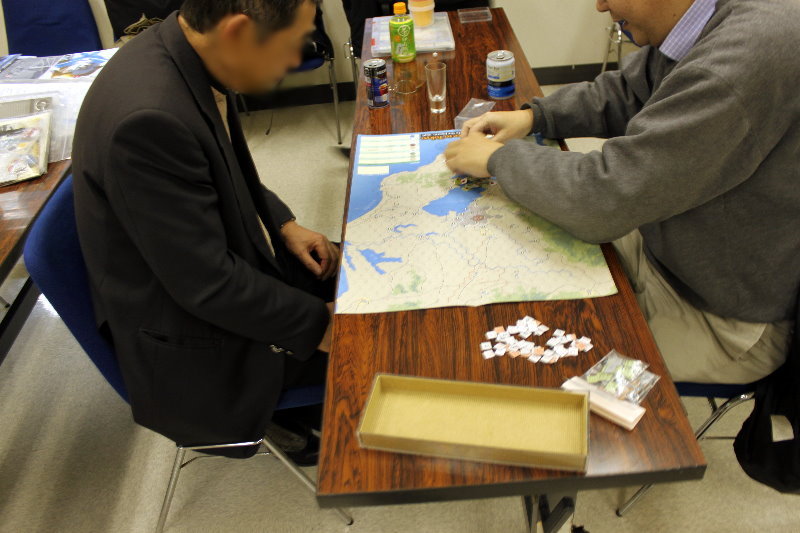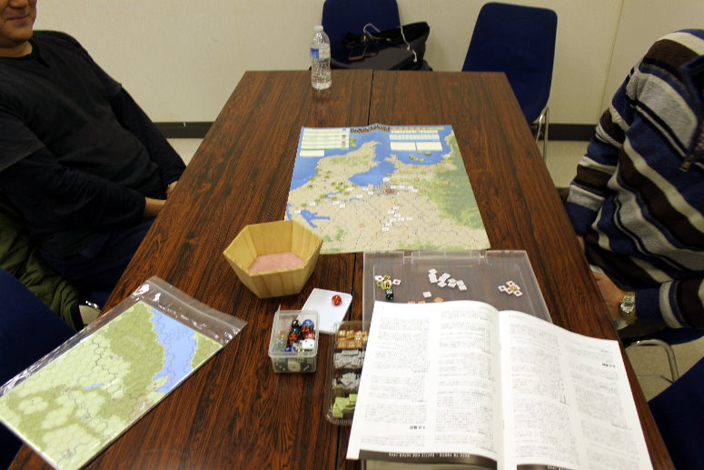 写真の手前に見えるのは、こまいふさんお手製の海戦テーブル。こまいふさんはこの他にサマリーも作成してプレイへの意気高し!です。