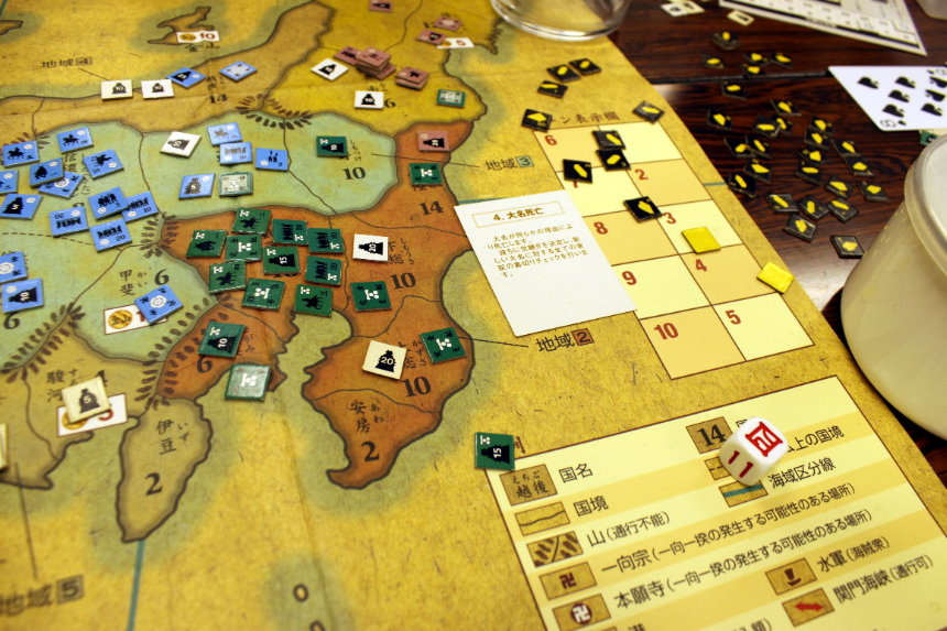 出口の塞がれている毛利、転落した三好と朝倉が国力40、それに伊達が追うという展開でした。