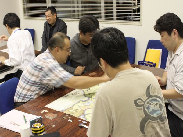 3戦目が終わったのは18時近くだったでしょうか。その対戦の間にMatさんが到着しており。『NO RETREAT!』の対戦を横から見守っていたのです。