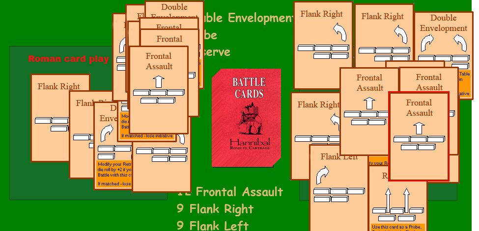 そしてアフリカヌスは探りを出すと、ハンニバルは対抗手段がなく、この会戦の敗北が決まってしまった。探りはハンニバルの特殊能力を発揮できるカードであるが、探りは他から変えようがないのだ。