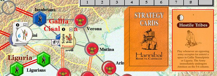 カルタゴは「オラはローマが敵だべ」でハンニバルの進駐しているマッシリアにPCを置けば、ローマは「奴隷から徴集」で同じ地域にPCを置いた。