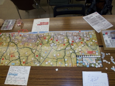 この週末は、他のサークルと開催なっていたため、少なめでした。それでも10名以上はコンスタントに集まっており、ウォーゲームの人気はある程度は安定している、と言えるのではないでしょうか。