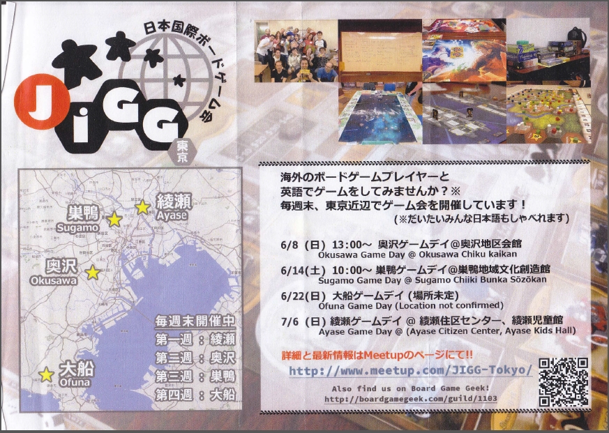 毎週、JIGGとしてゲーム会を綾瀬、奥沢、巣鴨、大船と週代わりで開催しています。まあ、JIGGの概要はこんなモンでいいかな。