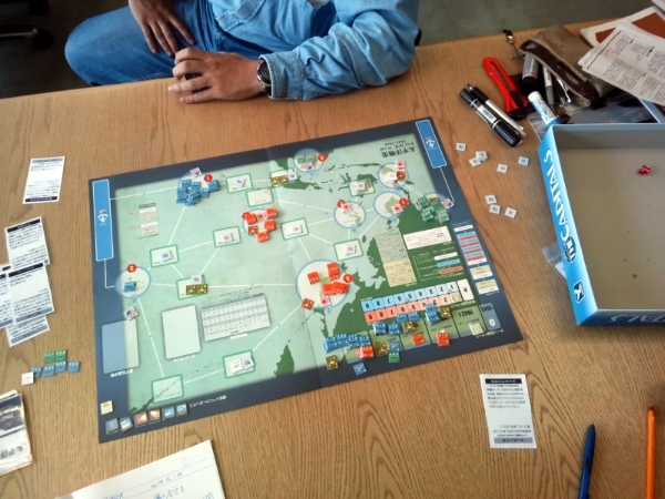 ちなみに、ヤニスさんは『太平洋戦史』の英語版カードを自作していまして。これの完成度が高く、皆に驚かれていました。私はカードを拡大しただけでしたが。