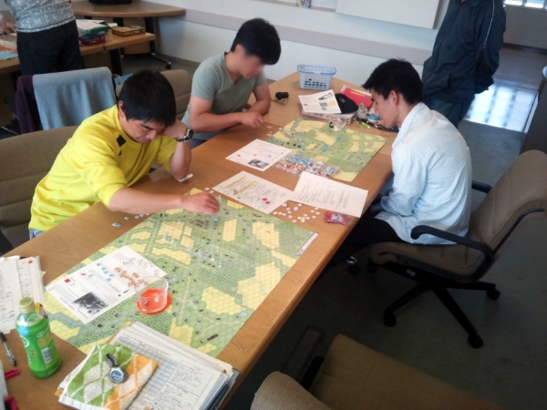 手前では『太平洋戦史』っているmiyaponskyさん。その隣がASLの『Decision at Elst』が2卓。