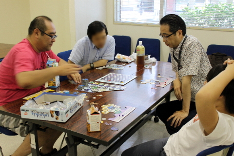 主流はユーロゲームやカードゲーム。事前の参加表明では10名程度でしたが、当日にボチボチ現れ合計20名以上の盛況になっていました。