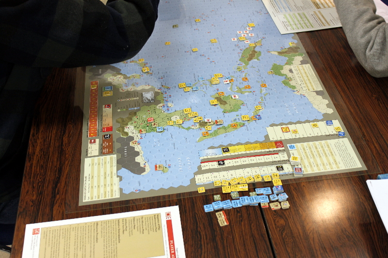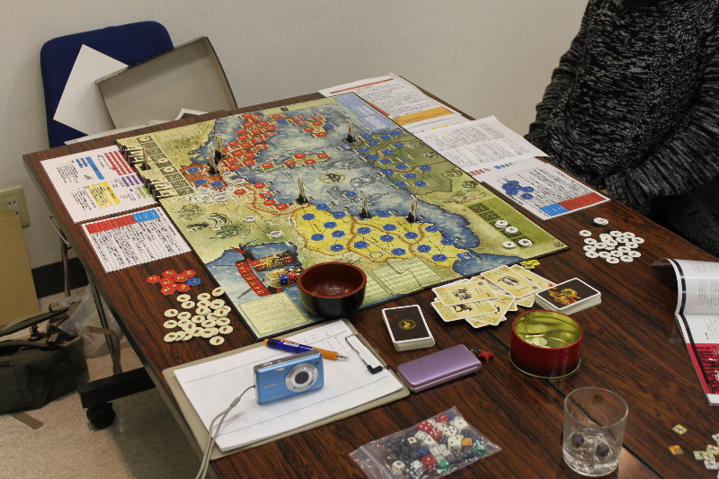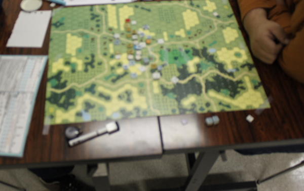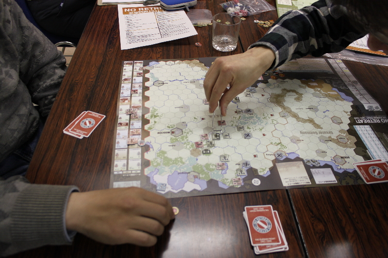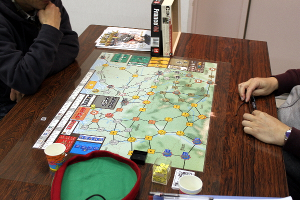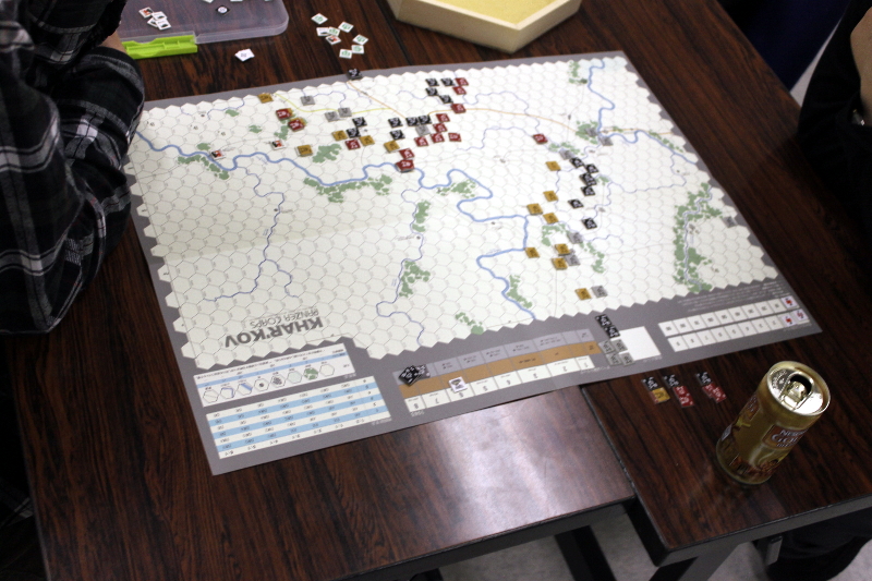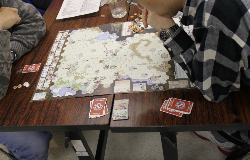 で、こちらの写真は下総さんが軍神さんに挑んだ『ARNHEM!』。ドイツ軍を担当した下総さんは、正面からの攻防に拘り過ぎてしまい。部隊を消耗し尽くしてしまい、お手上げの状況です。