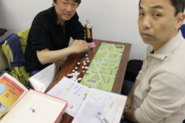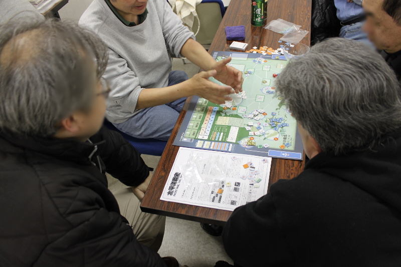 風見鶏さんが持ち込んだお手軽ゲーム。風見鶏さんに、クリスマス・ピポさんとKBさんが合流し、対戦していました。