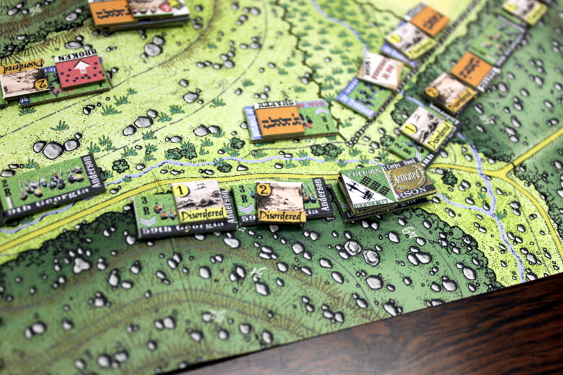 ゲティスバーグの戦術級ゲーム。おそらく、どこかの岡の攻防戦なんでしょうねぇ。Rose’s WheatfieldとかThe Stony Hillとか描かれていますが、見当が付きません。あっ、知ってる方は心に留めておいてください。こちらは、そんな知識を欲してまへんから。