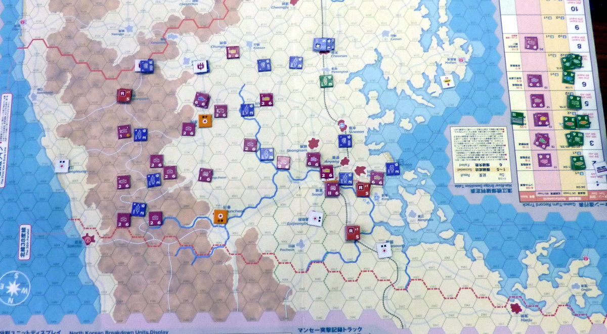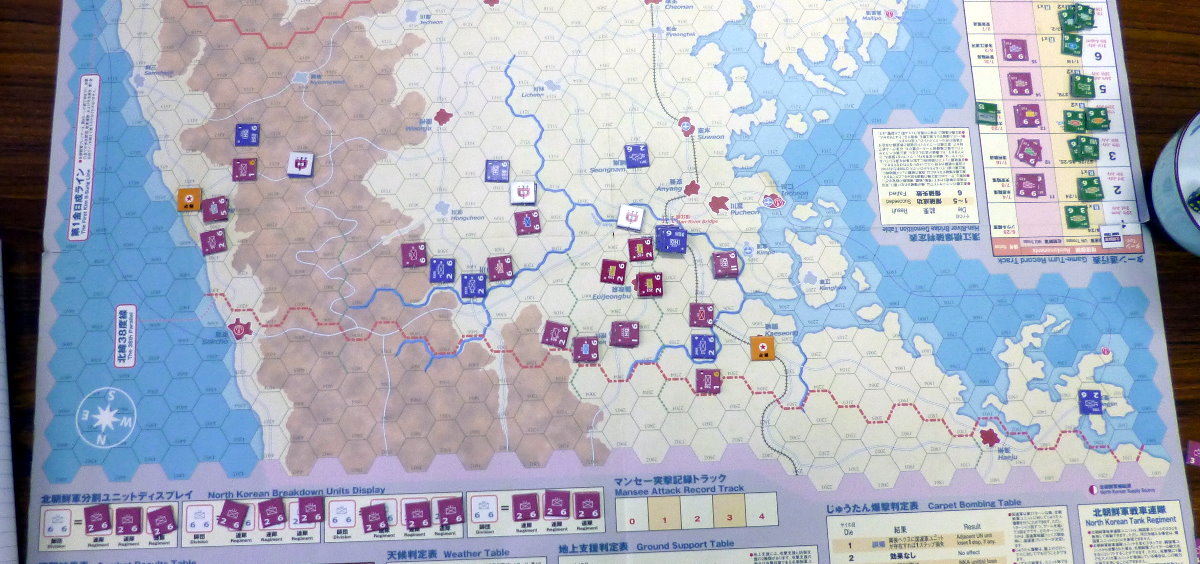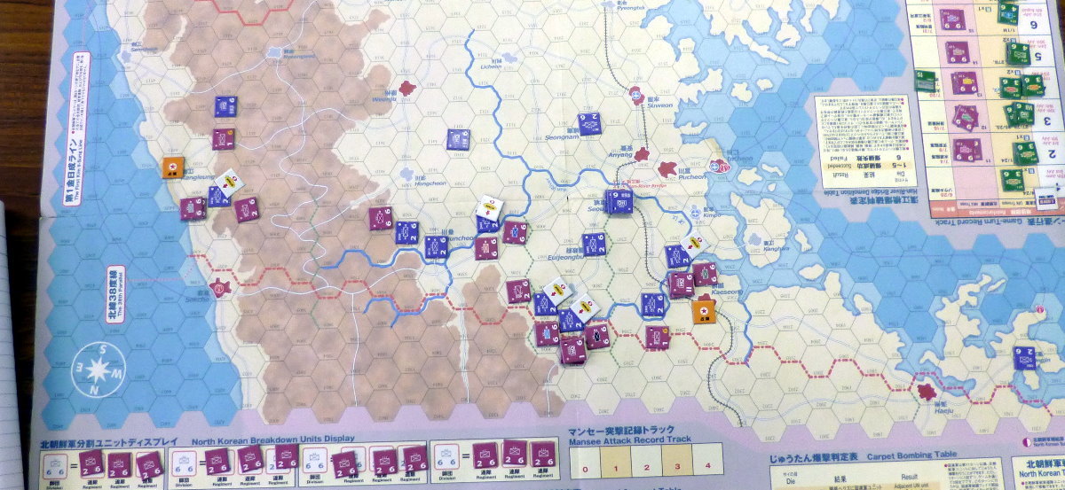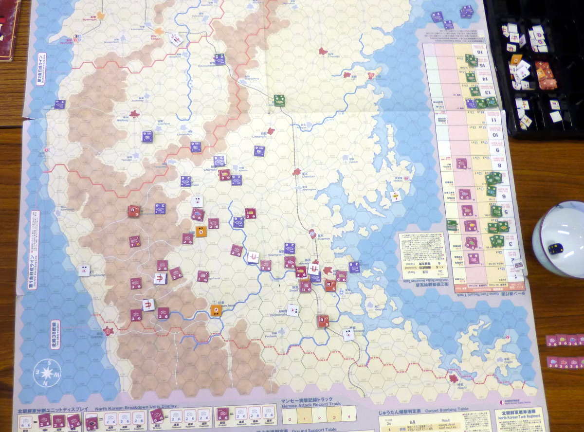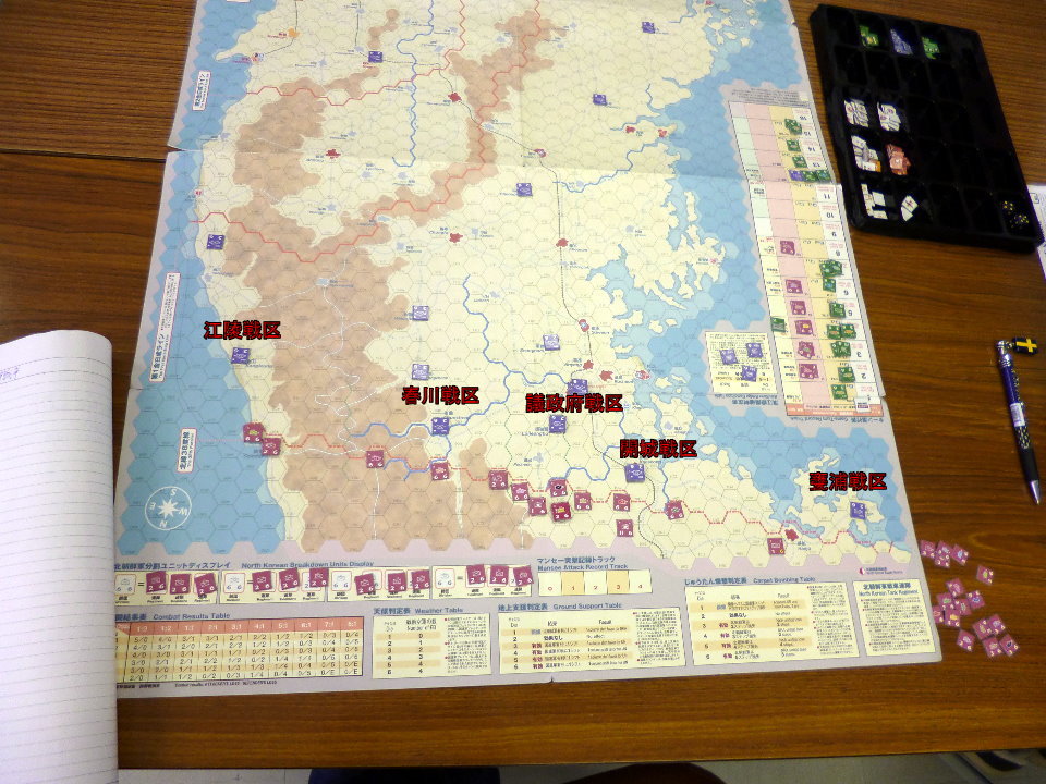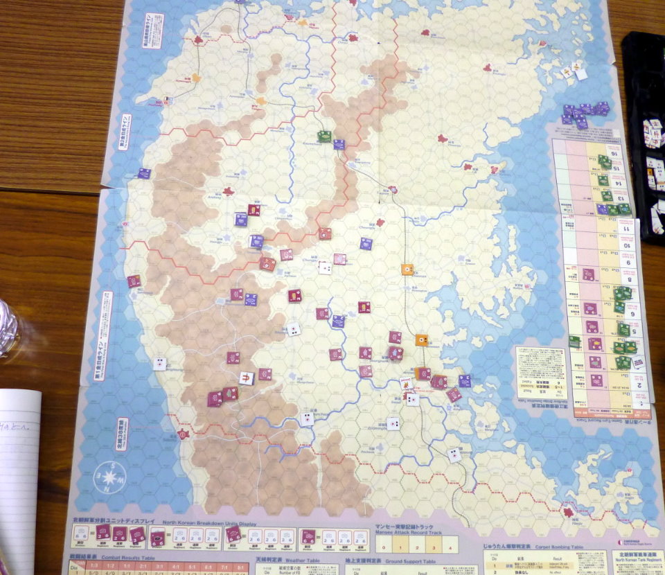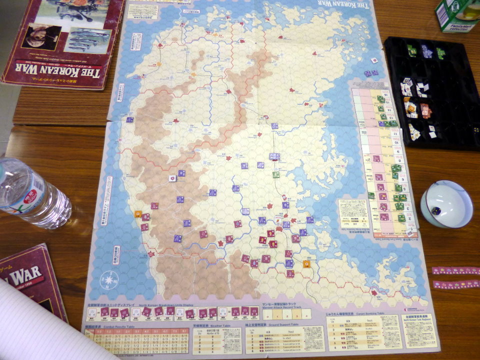 この隣では、コマンドマガジンの『常徳殲滅作戦』も展開。珍しく、国産ゲームの新作が並んだのでした・・・。あらら、『誰徳殲滅作戦』の写真がない!