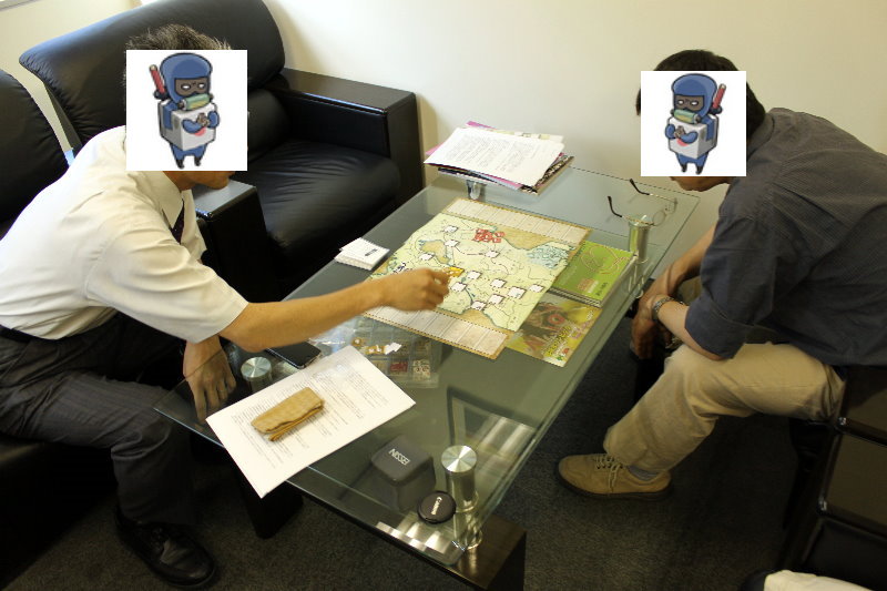 座っている席から、ホンキチさんが防御側のドイツ軍、y.nakanoさんが攻撃側のソ連軍。
