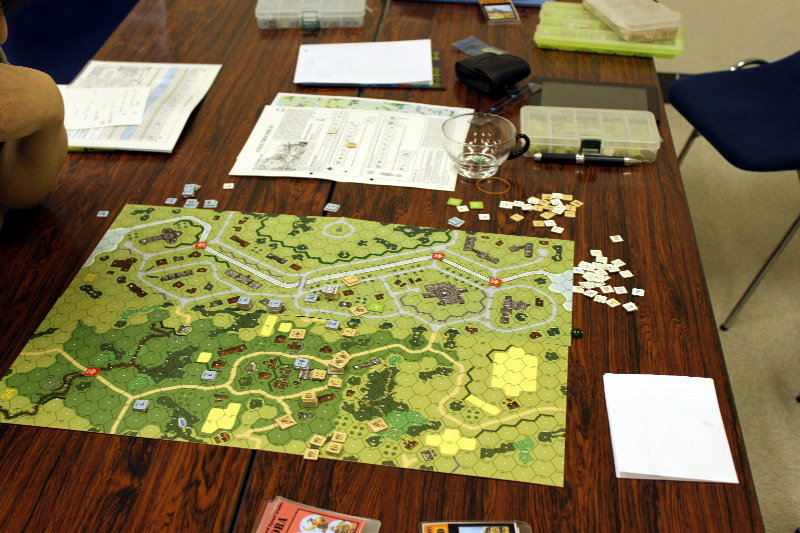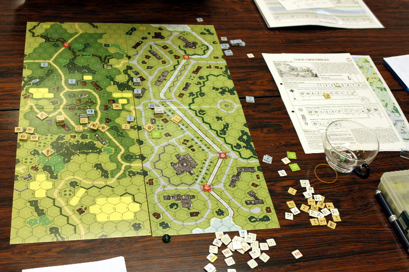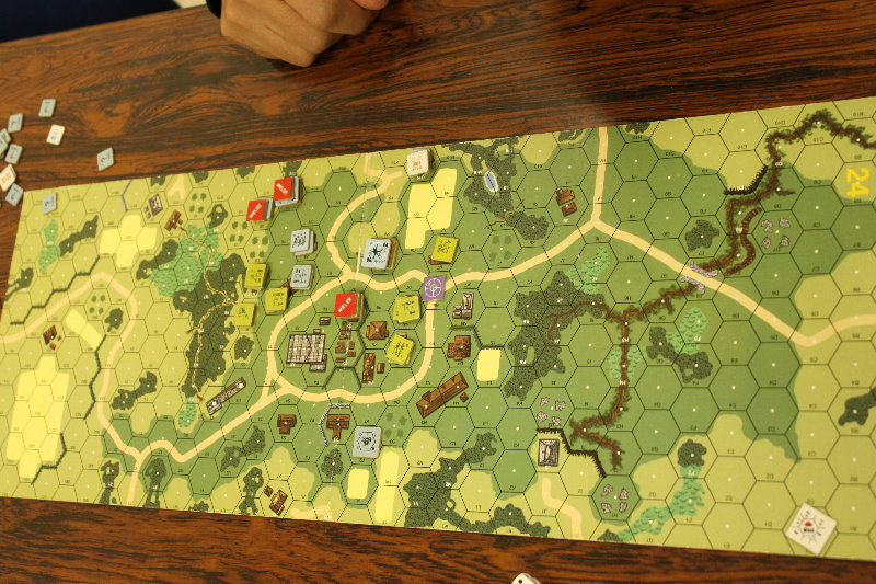ASLの魅力は沢山あるのですが、マップ2枚で攻撃側のイギリス軍は前進する距離が長く。それに対抗してドイツ軍も撤退する必要があります。