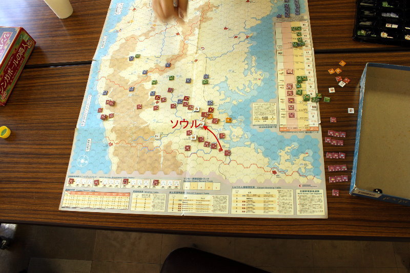 この時点では、ソウル自体にそれほど価値はありません。しかし、ここに登場(というよりも徴発していた)補充ユニット3個を飛ばされたのは痛かった。動かし忘れていたのでした。