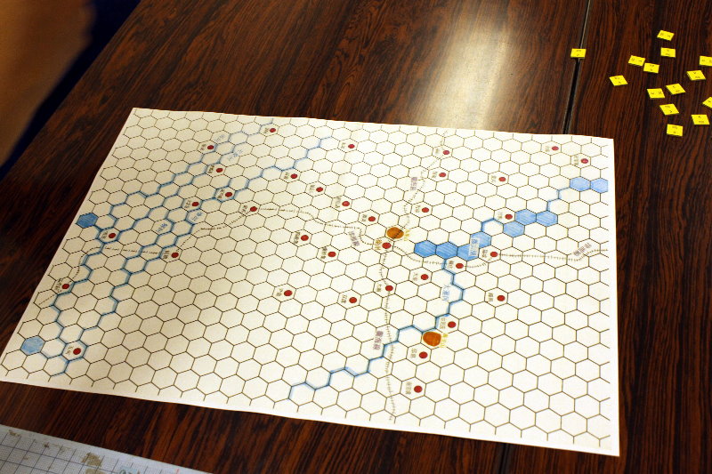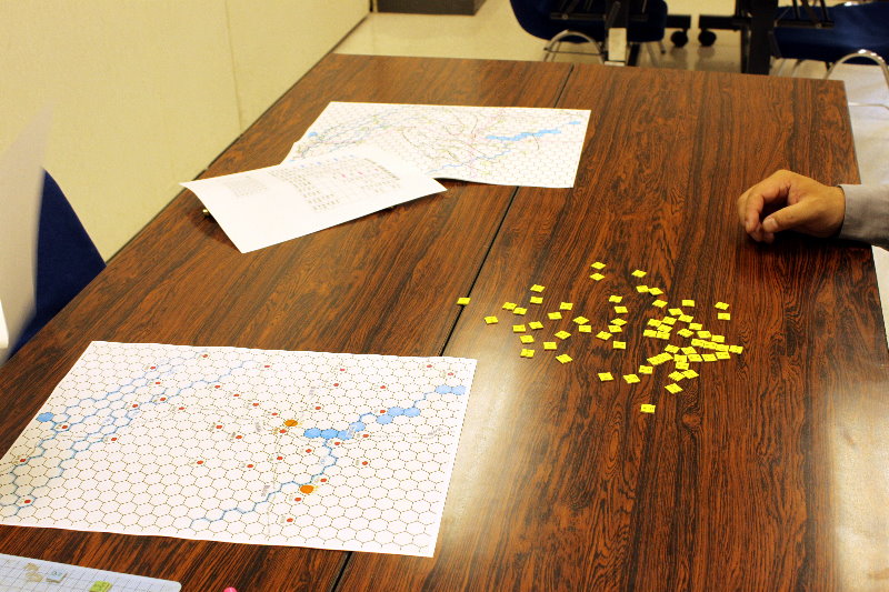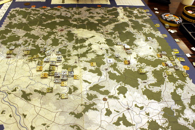 写真は3ターンの時点で、それを違う角度で撮っております。陣営は私が守るドイツ軍、やっさんが攻撃するソ連軍でした。