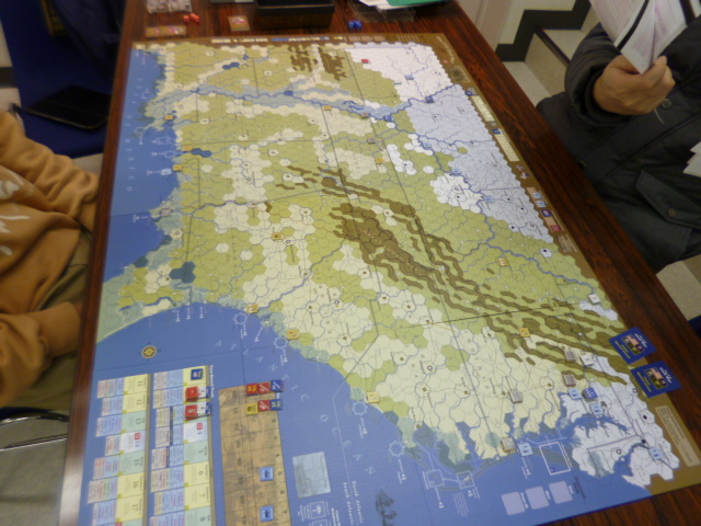 手前が私と提督さんのK2P『Across the Pacific』、向こう側が かみさんとDRAGOONさんのGMT『The U.S. Civil War』。