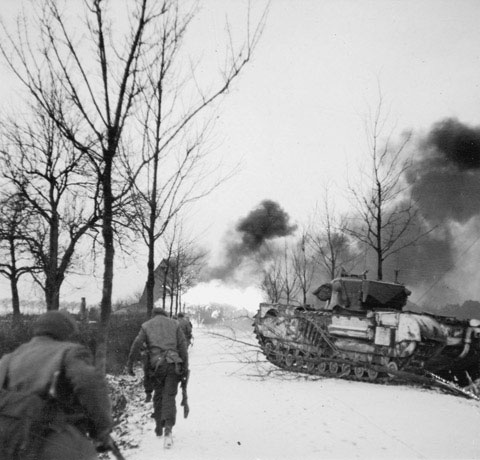 攻撃するイギリス軍は戦車やOBAに支援されている。