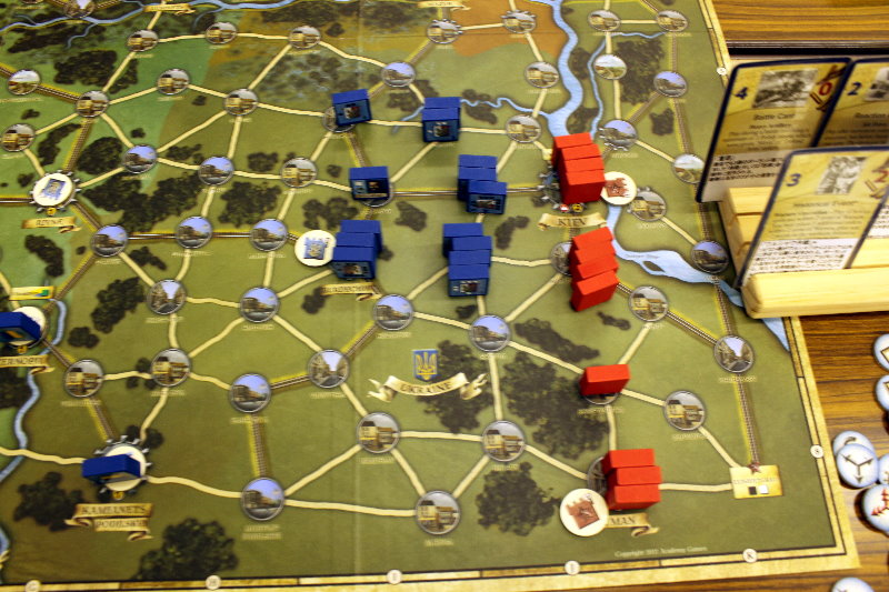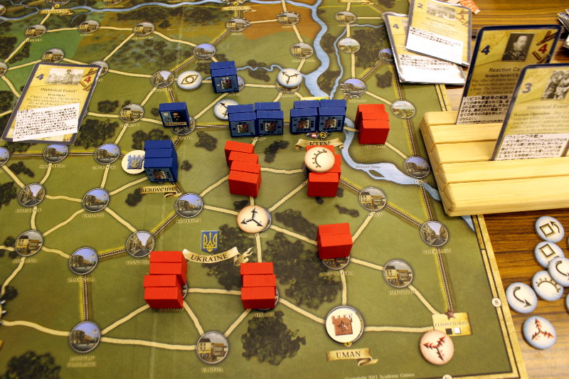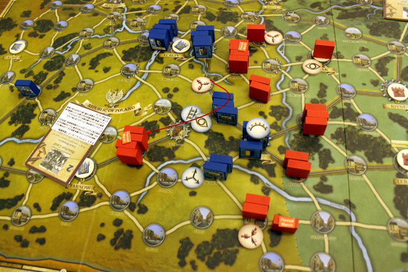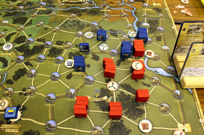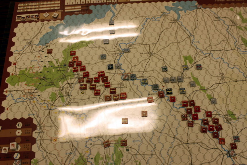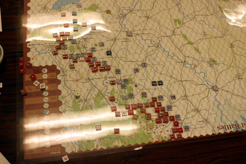 この間違いにより、ソ連軍の攻勢がかなり早まったと思われます。ルール間違いがなければ、1手番分はソ連軍の攻勢が遅れるため、ドイツ軍の防備は強化されていたでしょう。