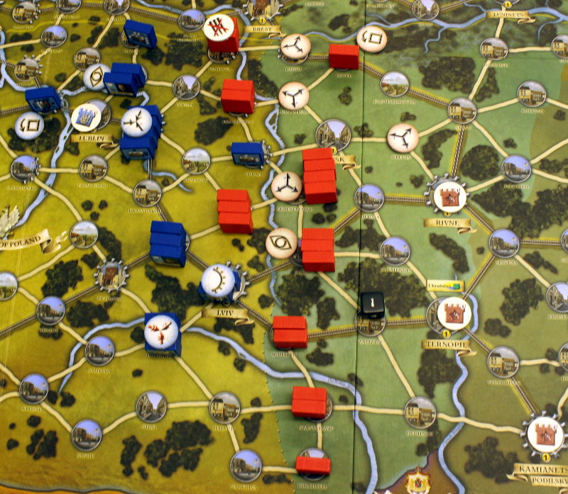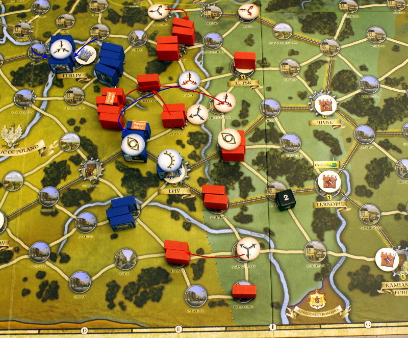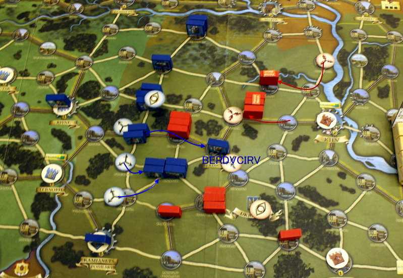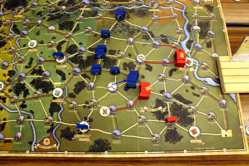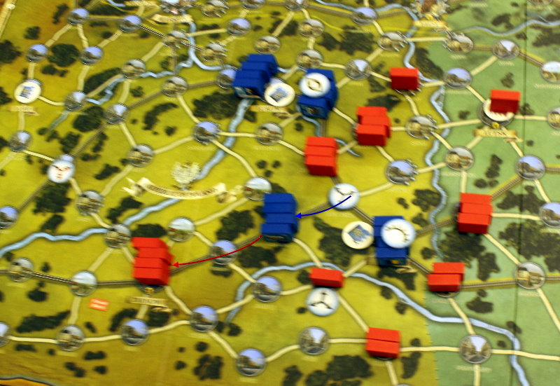 ソ連軍は、先のターンに南部でラッシュを行い、そのためドイツ軍の注意をそちらへ逸らしておき、このターンに北部でラッシュを行なった。