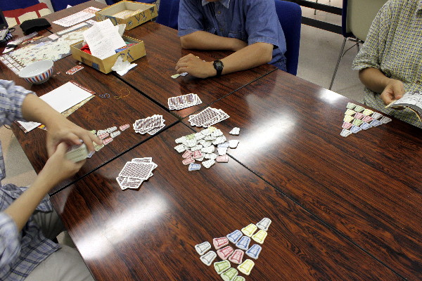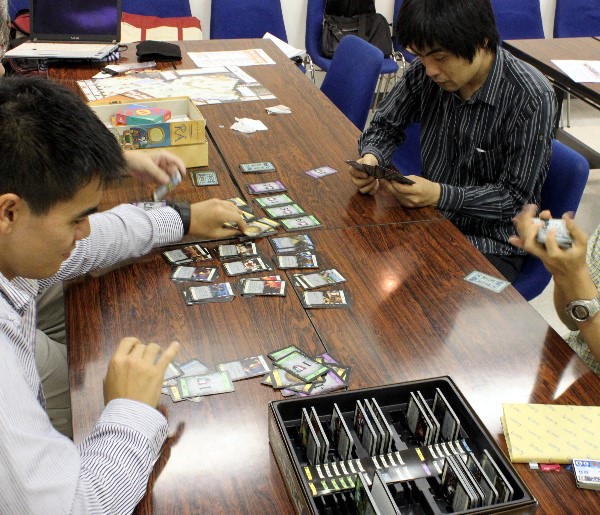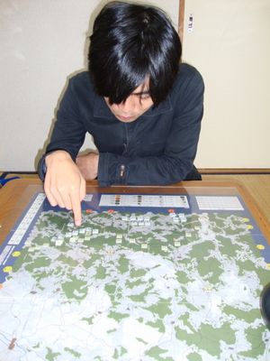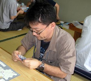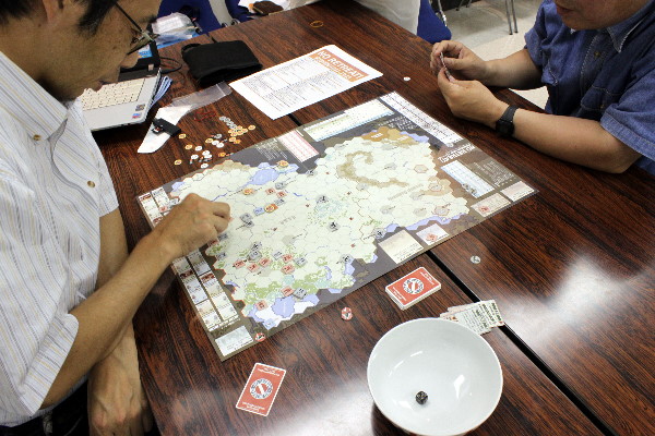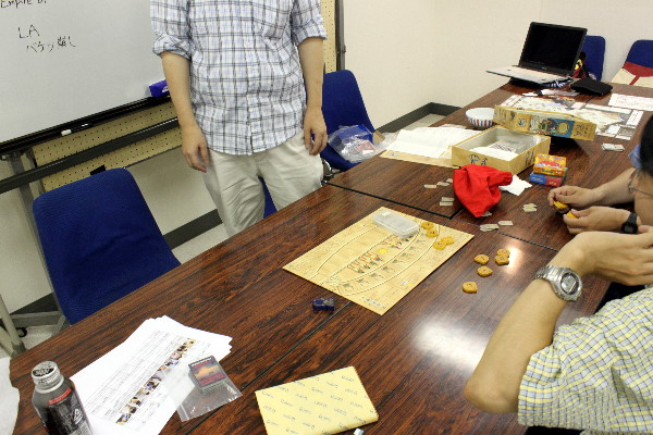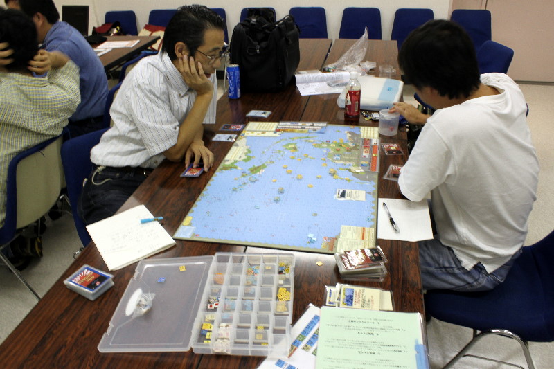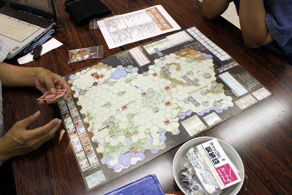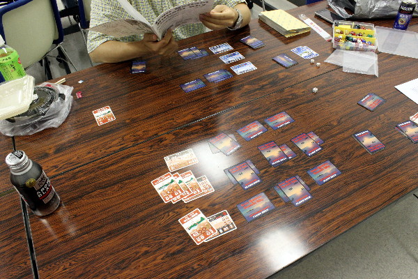 先の写真は、私がMiyaponskyさんへインスト中。教えるのも簡単なんです。普通の作戦級にカードを加えただけですから。ただ、そのカードを如何に使うか、どんな効用があるかを、教えるのはちょっと厄介です。