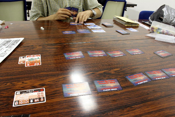 いきなり雰囲気が変わって、カードゲームになりました。個人的には、海戦モノはカードでの表現が似合うように思います。しかし、机の上に並べるため、気分がノリません(´・ω・`)。