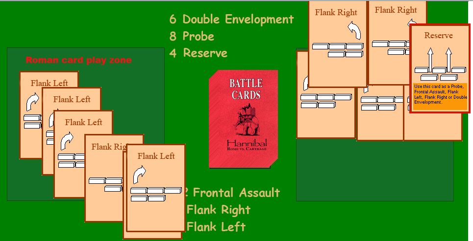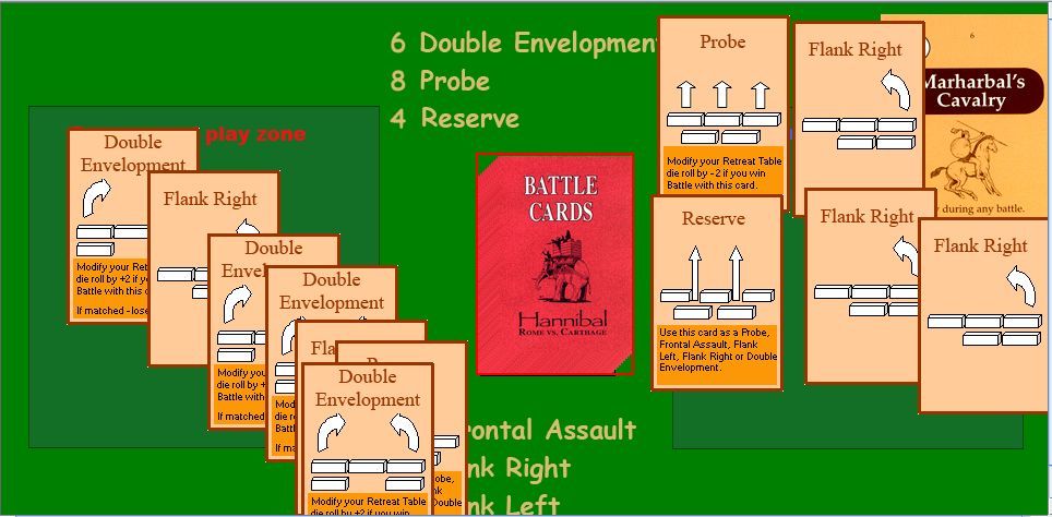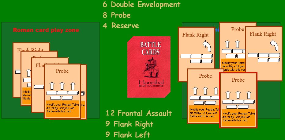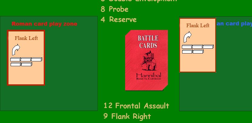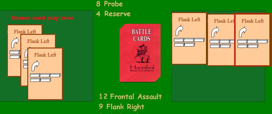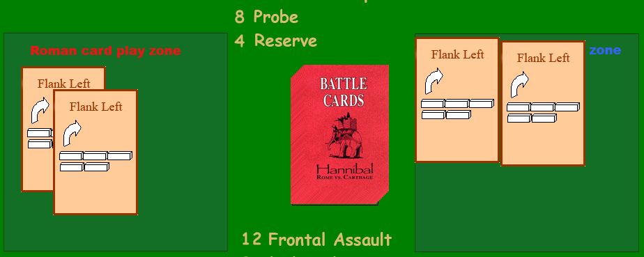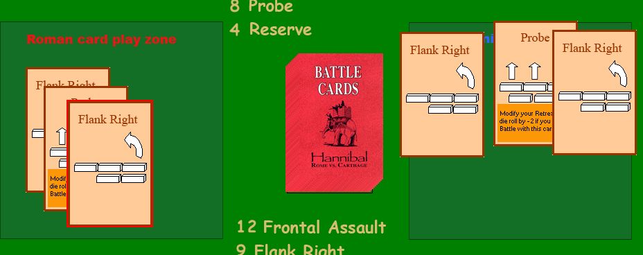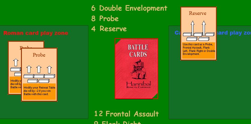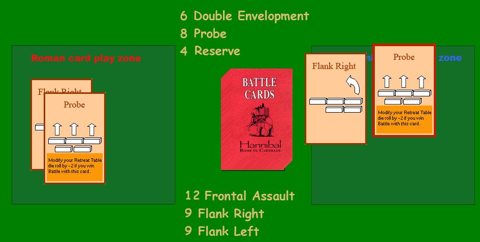 そしてアフリカヌスは探りを出すと、ハンニバルは対抗手段がなく、この会戦の敗北が決まってしまった。探りはハンニバルの特殊能力を発揮できるカードであるが、探りは他から変えようがないのだ。