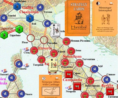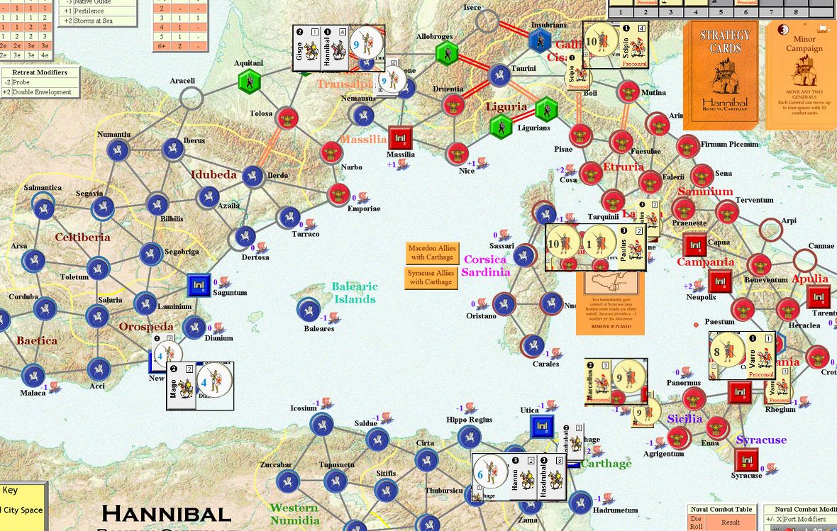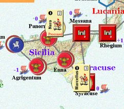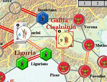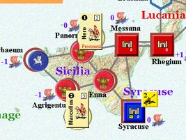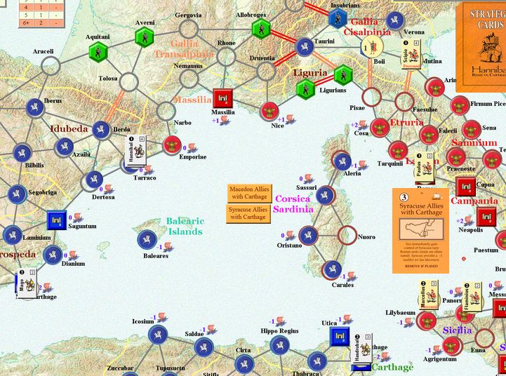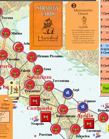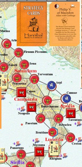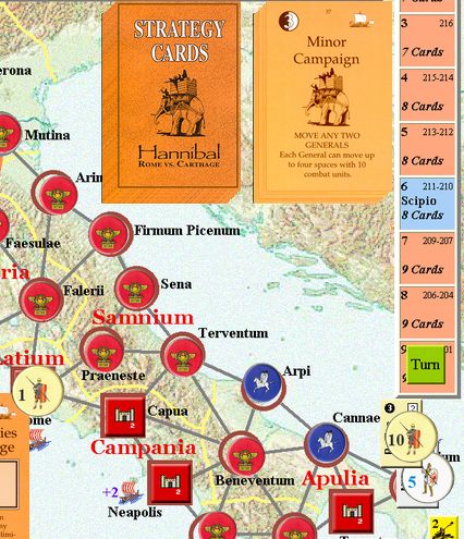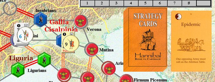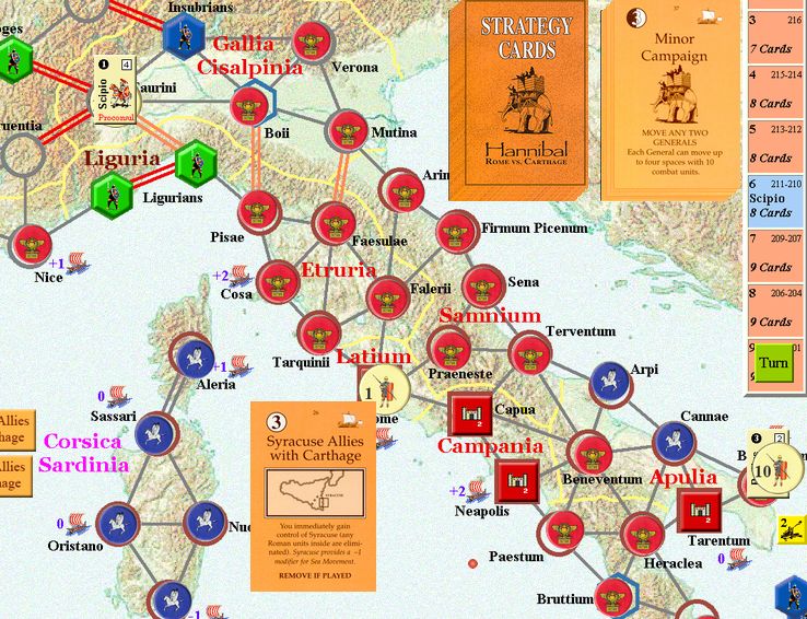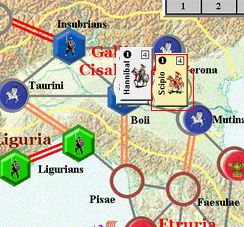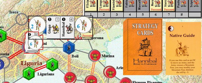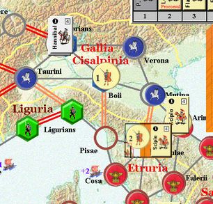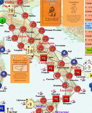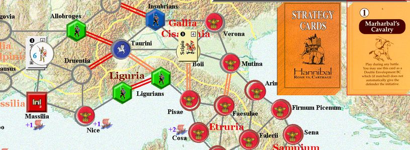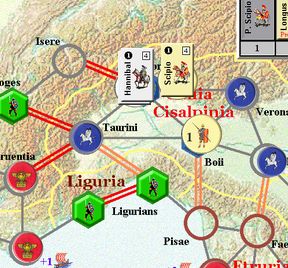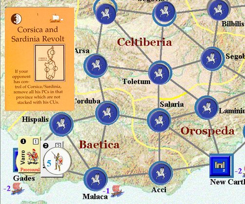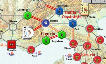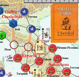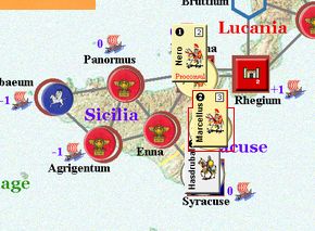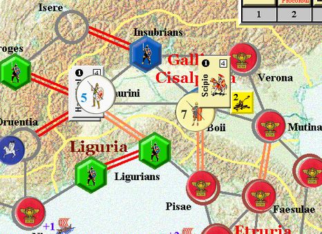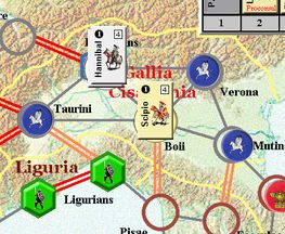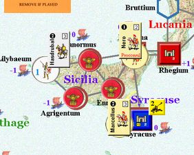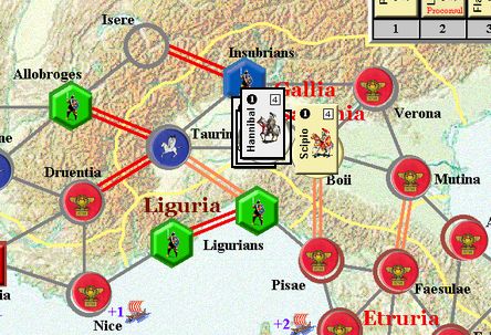 カルタゴは「オラはローマが敵だべ」でハンニバルの進駐しているマッシリアにPCを置けば、ローマは「奴隷から徴集」で同じ地域にPCを置いた。