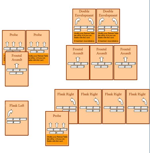 うーん、バランスは取れていないため、防御に向かない。左翼突撃が1枚しかないのは心細い。しかし右翼突撃が4枚あるため、主導権次第では決して不利とは言えまい。