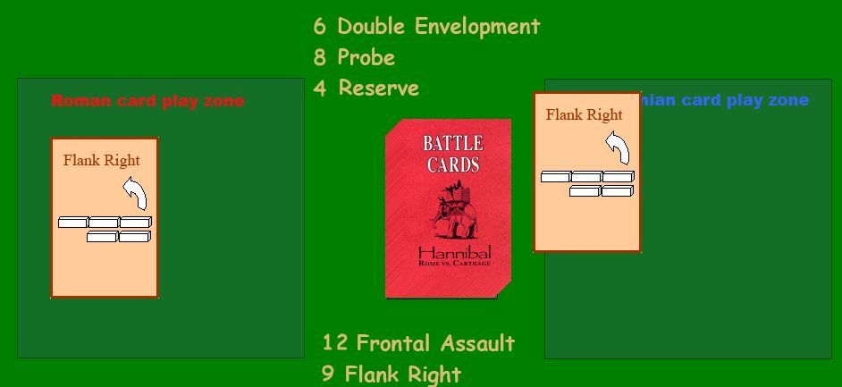 アフリカヌスはまたもや探り。ハンニバルもそれを受け流す。しかし主導権のDRは6で、ハンニバルは攻撃権を得られなかった。