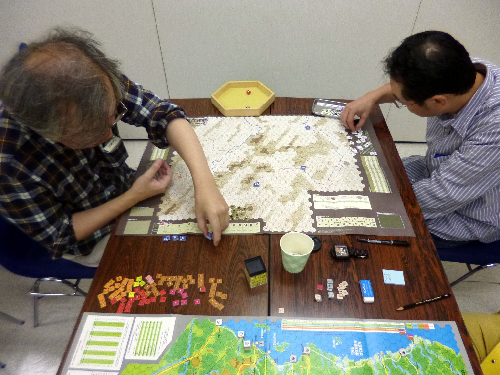 猿遊会へ向けて、AH『FLAT TOP』を練習。ところが、準備を始めた下総さんの顔色が一瞬にして変わり。日本軍のユニットを忘れてきた、と。