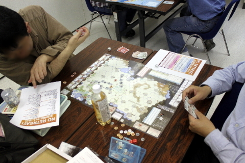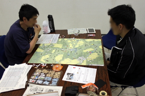 で、平和なボードゲーム会場へ、血と鉄の臭いが強烈なウォーゲームを持ち込む。