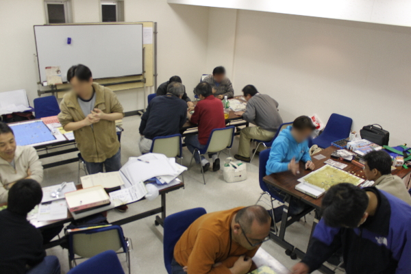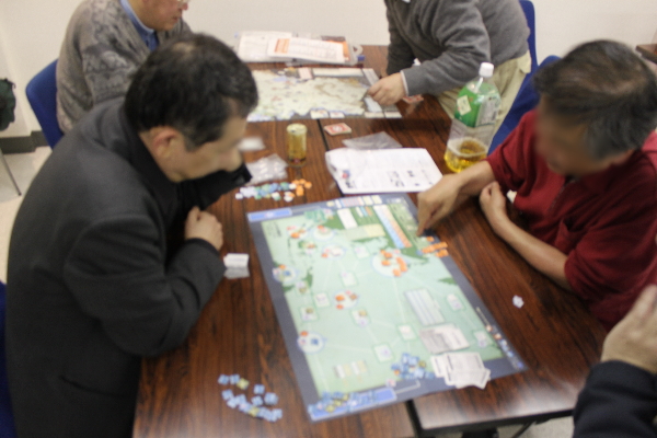 風見鶏さんが持ち込んだお手軽ゲーム。風見鶏さんに、クリスマス・ピポさんとKBさんが合流し、対戦していました。