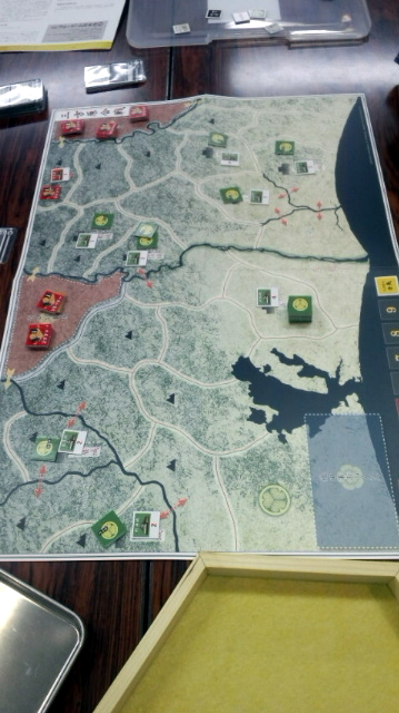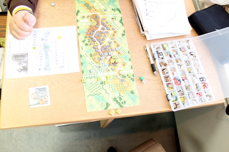 イラク帰りの かみさんとaoさんが続けて対戦していました。このゲームは一回目の士官学校でコマンドマガジン編集部へお邪魔した際に、ちょっと弄ったのでした。