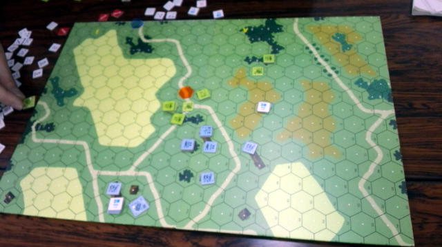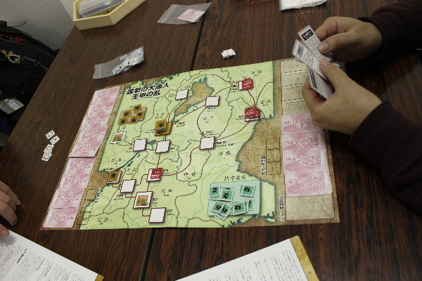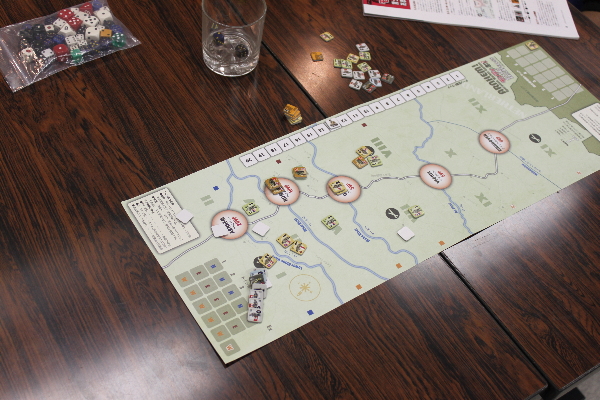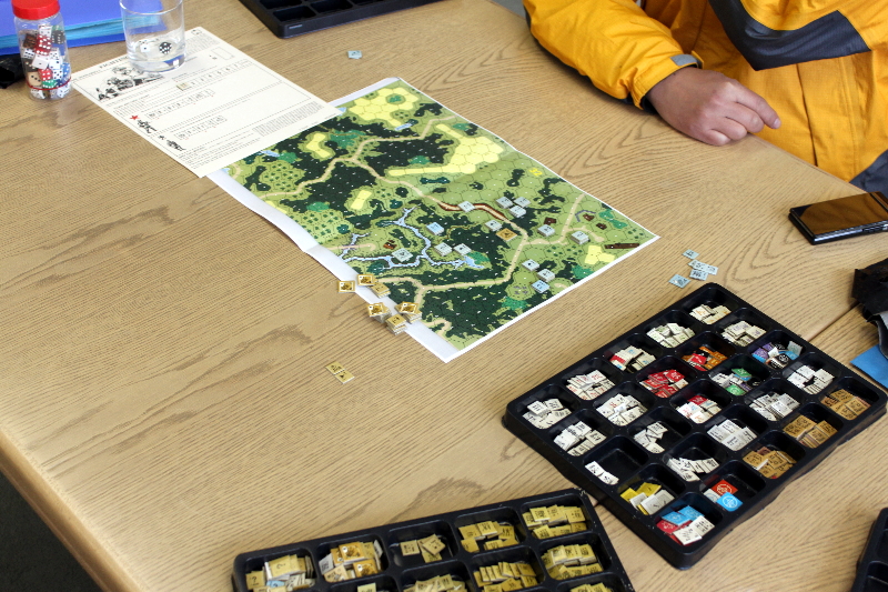 カードによるイベントと、手順の入れ替え、それに不確定戦力なユニットなどで、小さいながらも考えるところが多いゲームに仕上がっています。