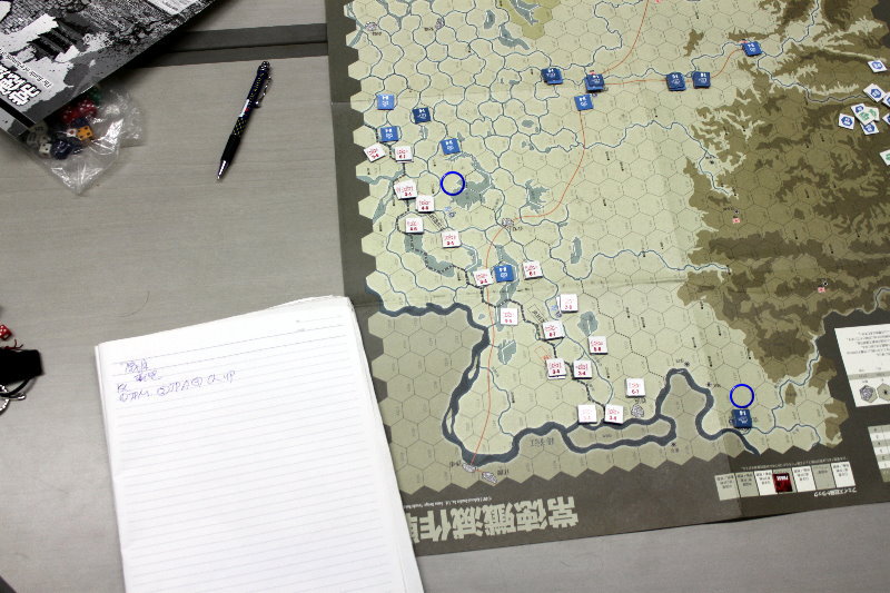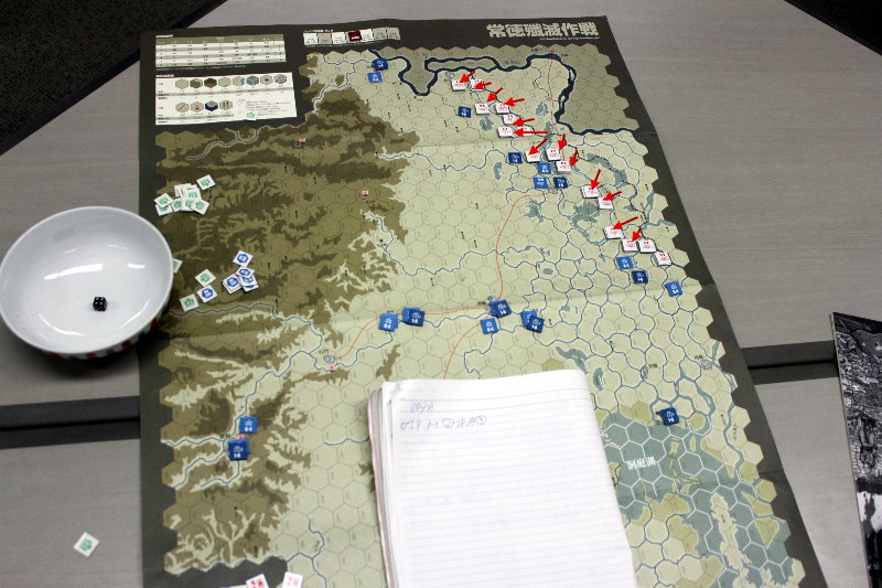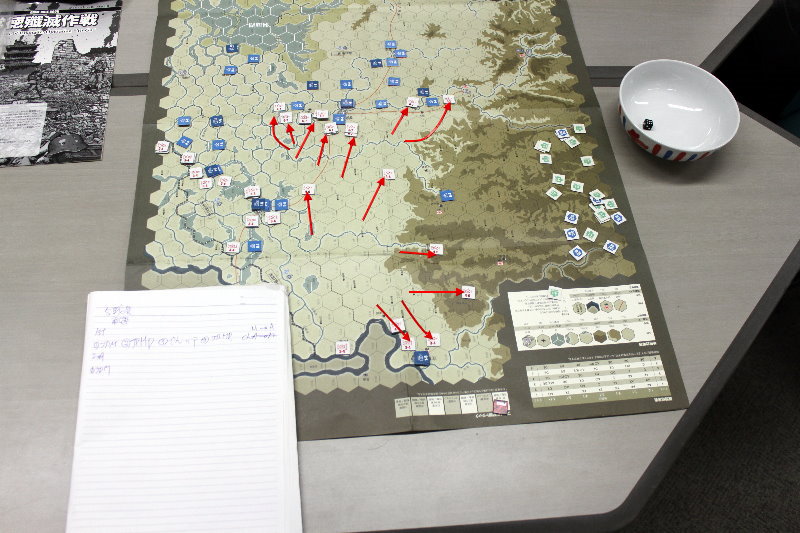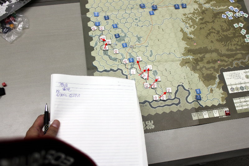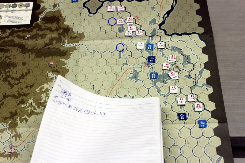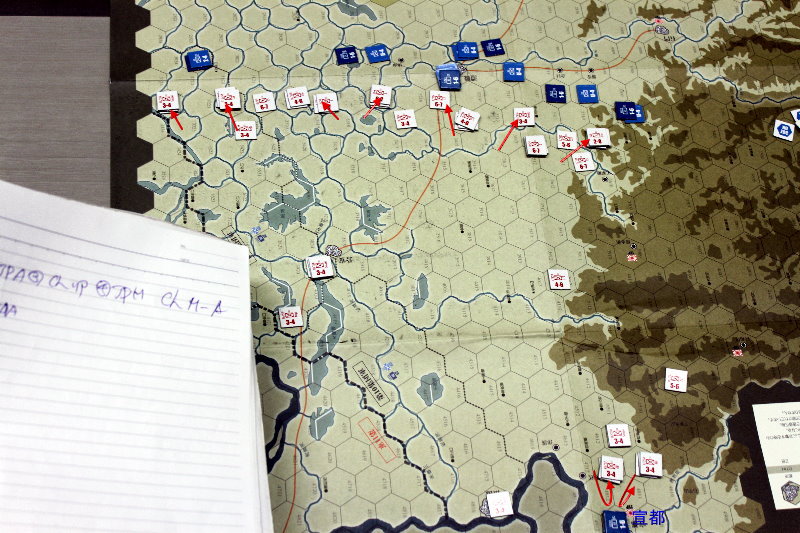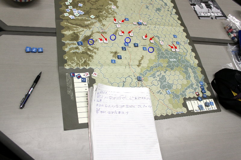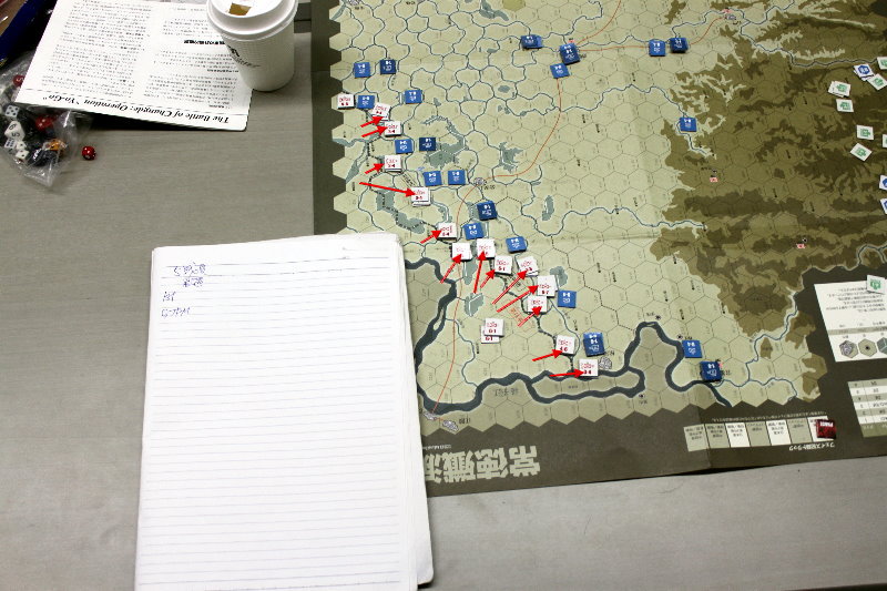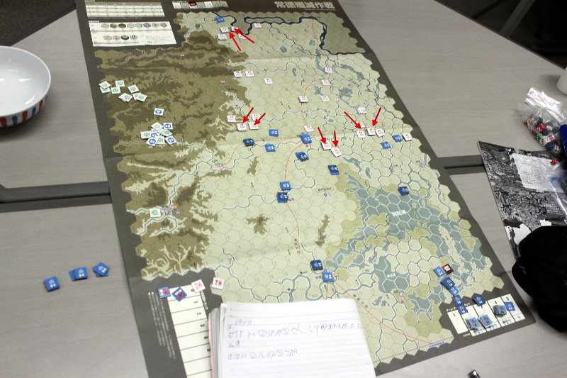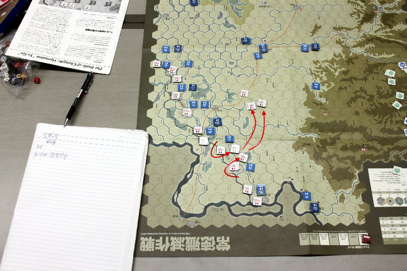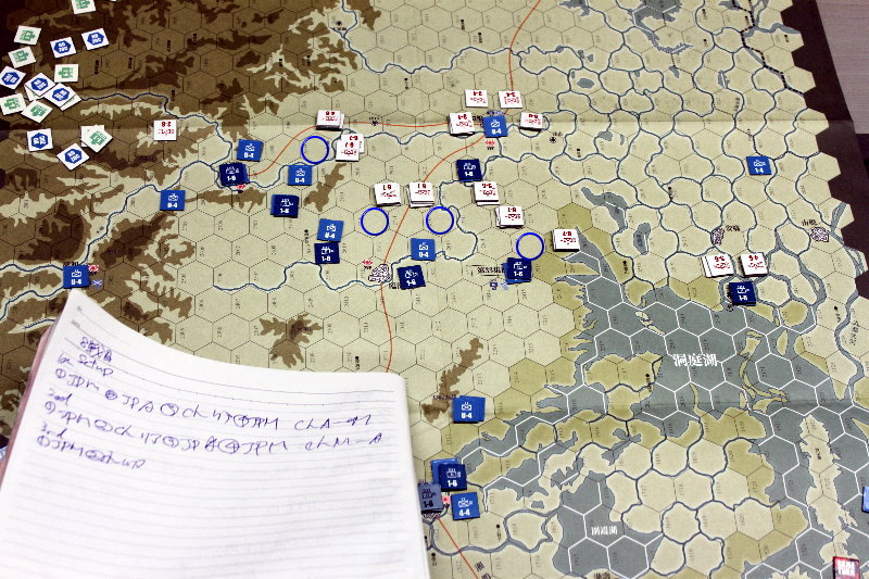 *DOは、防御側は選択したユニット数を除去し、攻撃側はその端数を切り上げた半分を除去する。日本軍は3個スタックを包囲攻撃して、中国軍に「3個」と言われたら痛い。今回はDOが頻発して日本軍を苦しめた。