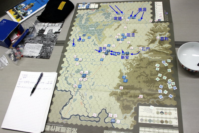 主力は洞庭湖から澧懸、そして山地までの2重の戦線を構築。何とか、中国軍の守り方を習得できた。