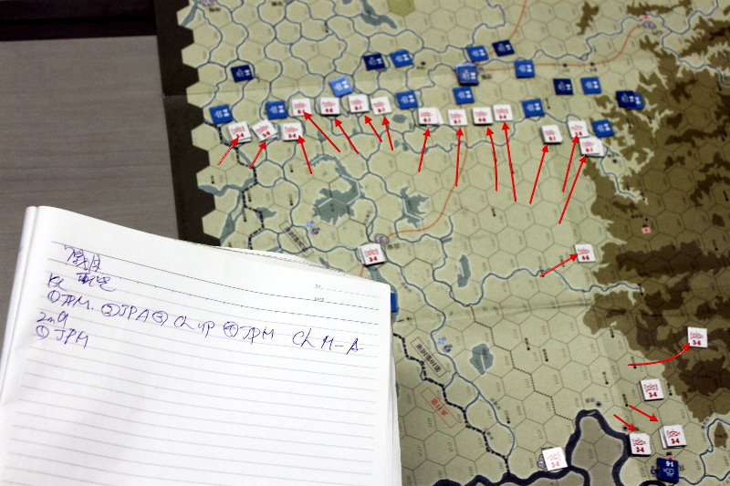 ちょっと飛んで中国軍の移動⇒戦闘を終えたところ。