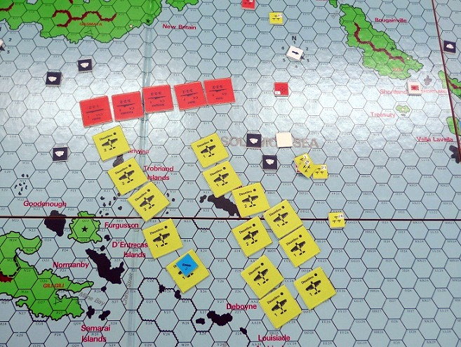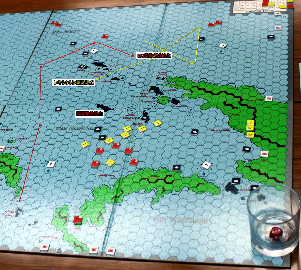 MO攻略隊はソロモン海から珊瑚海へと進入しようとしていた。ソロモン海と珊瑚海へは、珊瑚礁が邪魔して経路が2つしかない。