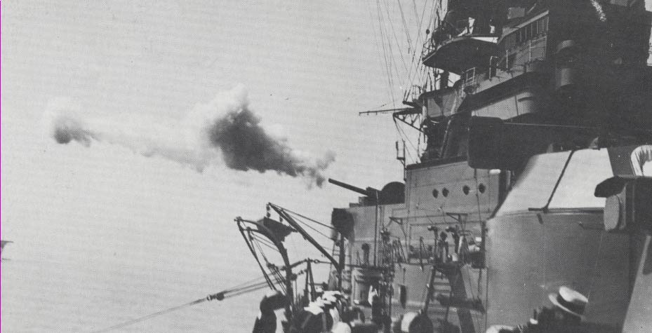 航空基地の索敵員に発見され、急遽爆装されたP39やP40の爆撃を受けるものの、損傷を被る事なく艦砲射撃を実施。航空基地へ損害を与えて離脱。そのままMO護衛隊の巡洋艦隊は、引き返しMO攻略隊と合流。本来の役割へ戻る。