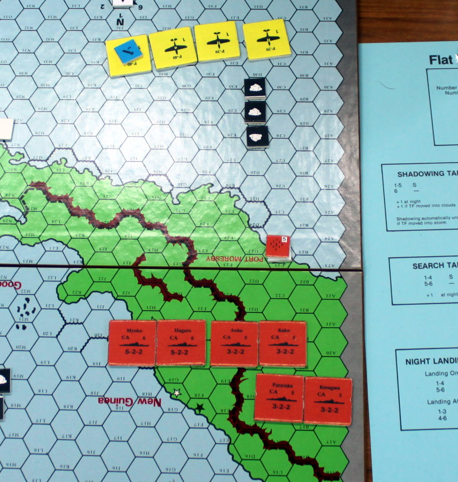 スコールの東方は、ポートモレスビーの長距離爆撃隊から攻撃範囲へ入るため、大きな航路が変更を強いられたのだ。そこで最初にMO護衛隊が速度を上げ、西方へ大きく回り込み、MO攻略隊は、それに遅れて続いていた。