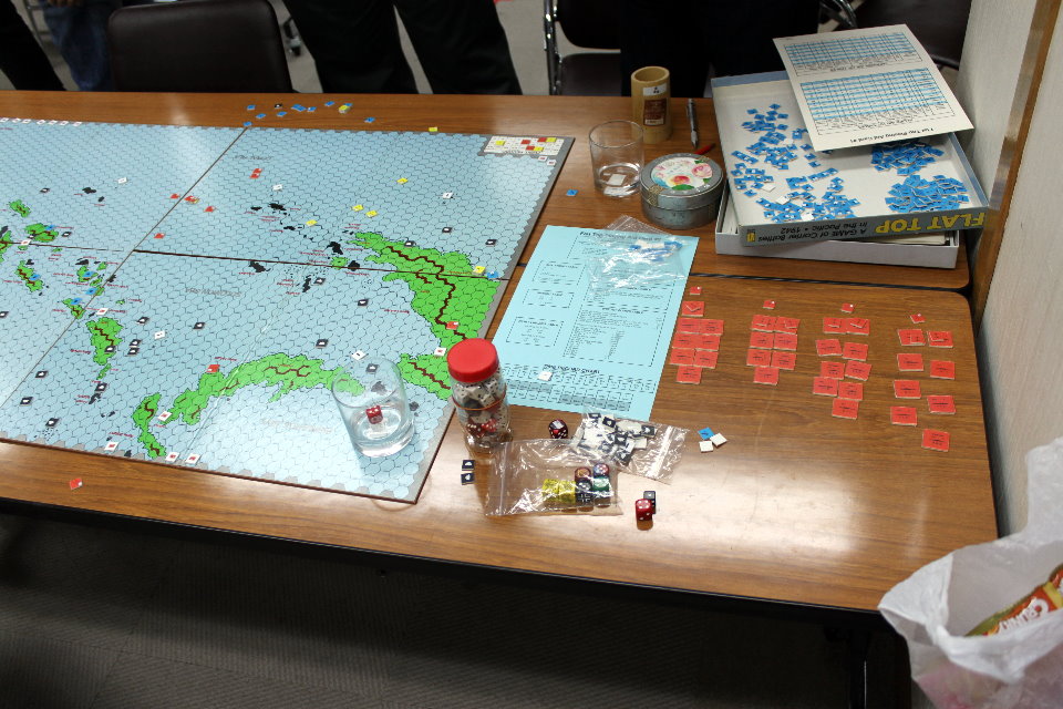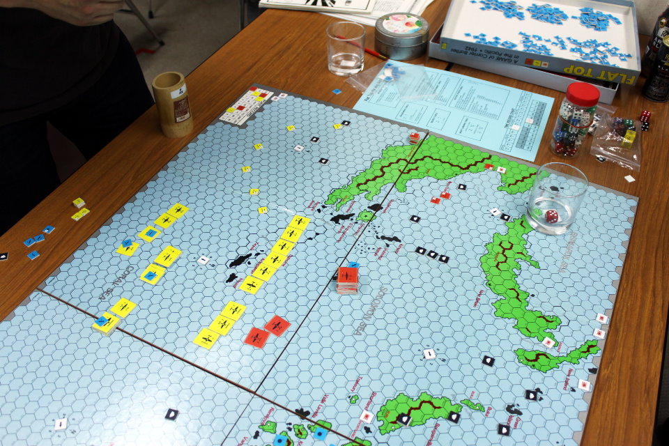 そして、写真左には次戦の準備に余念のないDublinさんの姿が。このGeneral誌に、『FLAT TOP』の追加シナリオが掲載されており、「マップを作成したらミッドウェーの対戦は可であるか?」との打診を受ける。