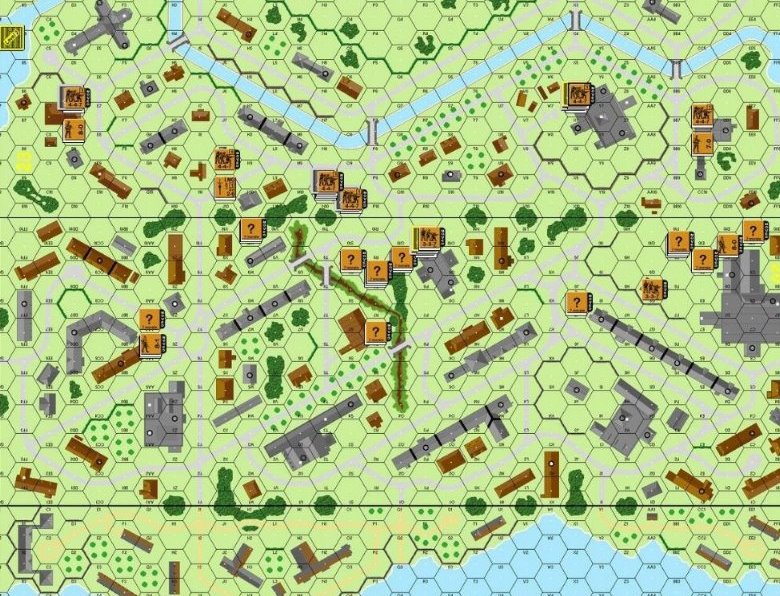 ドイツ軍が射撃を行うと、ダミースタックがあり消えています(C)。ここは運河を越えた地点を抑えられるため、要所と思っていました。それがダミーだったので、こちらも意外でした。