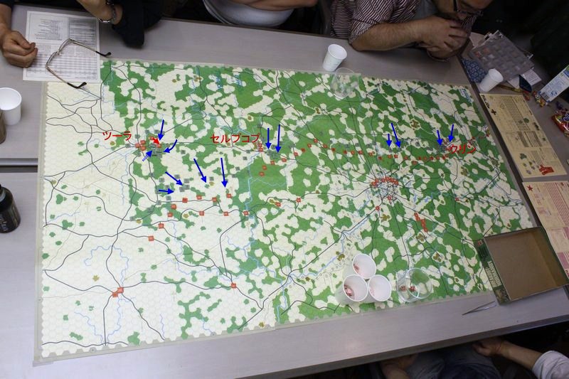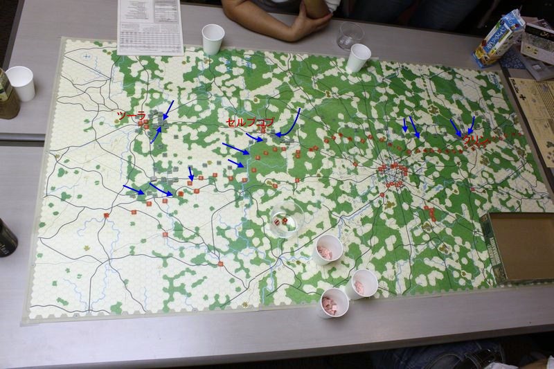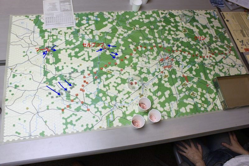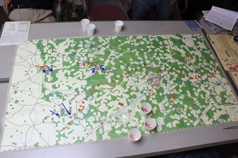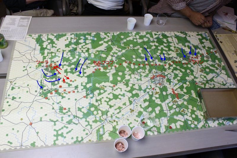 この戦略眼には新鮮な驚きを禁じえなかった。確かに、ツーラは危険になったものの、セルプコプの周囲にはドイツ軍がいないのである。対戦中にこのような適切な解説をされるのは殆どない。表情を変えることは無かったが、心強い味方を得られたと湧き上がる幸運感は格別だった。