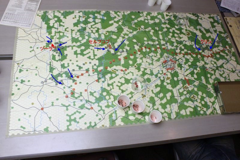 ドイツ軍の南部は盤端まで達している。要所であるツーラ、セルプコプ、そしてクリンをドイツ軍が占領し、ソ連軍の損害は30ユニットを越えていた。ここまでソ連軍が完敗するのは…。いや、ソ連軍が負けるところすら、初めて見た。