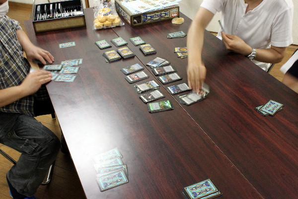 3戦目が終わったのは18時近くだったでしょうか。その対戦の間にMatさんが到着しており。『NO RETREAT!』の対戦を横から見守っていたのです。