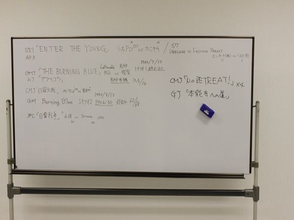 私にDASRECHさん、軍神殿の『NO RETREAT!』3人組が、組み合わせを相談しまして。まずは、私と軍神殿での対戦となりました。