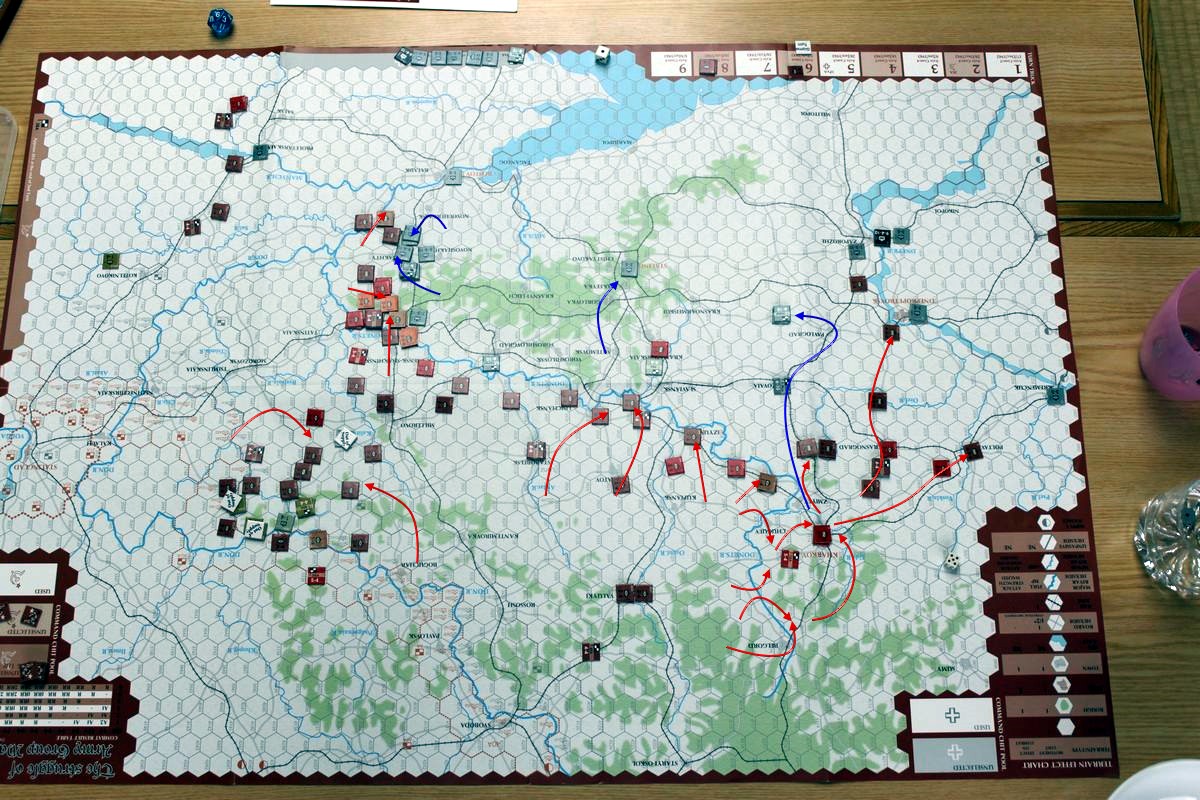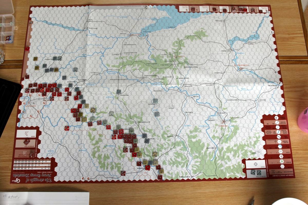 そこそこかな。いや、6A司令部が大河を渡河できてないので、いまいち運がドイツ軍へ傾いているみたいです。チットの順番も微妙にドイツ軍寄りでしたし。しかし、まあこんなモンでしょう。激マンは。